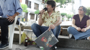 En la tercera versión de nuestro ejercicio de discomnaía tuvimos invitados del barrio Salomia, Quintas de Salomia y de San Fernando con acetatos que no habían sonado en nuestro encuentro, sonidos de rock africano, sonidos de rock clásico y la siempre anfitriona salsa. En la noche del sábado 18 de mayo, tuvimos la visita de Moncho Santana, ex vocalista del Grupo Niche, quien fue la voz que grabó Cali pachanguero del álbum no hay quinto malo. El maestro intérpertó Ana Milé (le pintó pajaritos en el aire) y otros temas acompañado de una pista y de la guitarra de Diego Abonía. Agradecemos a Everth (sancocho) que hizo los contactos para que nos visitara Moncho; también agradecemos a Jairo López quien hizo el bello registro fotográfico y de video que compartimos con uds a continuación.